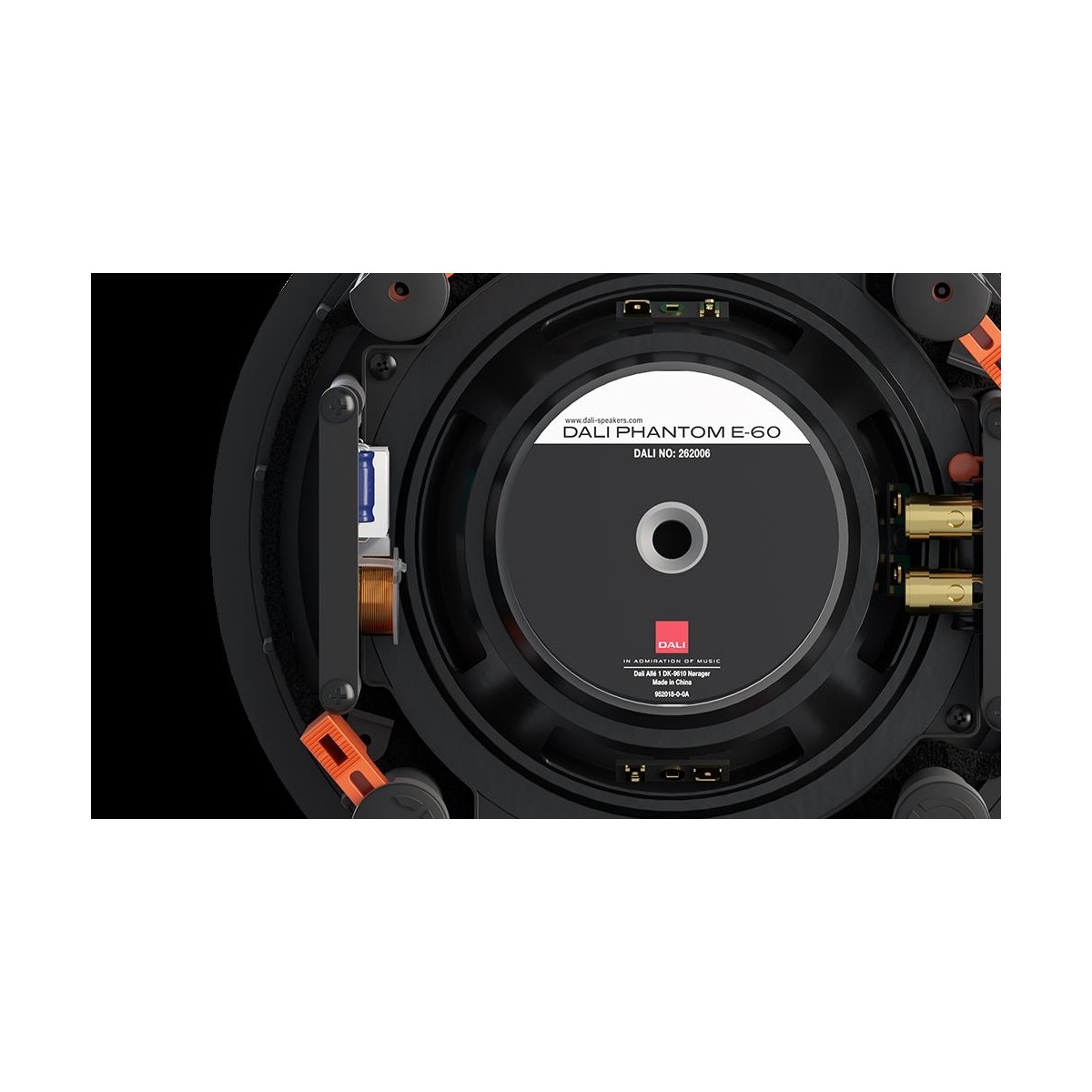 Tüm DALI hoparlörleri, bir oda boyunca daha geniş bir tatlı nokta ve daha iyi bir ses deneyimi sağlamak için eksen dışı dinlemeyi optimize eden geniş dağılım ilkesi etrafında tasarlanmıştır. Bu ilke, bir duvar veya tavan yüzeyi ile aynı hizada monte edilen PHANTOM serisi hoparlörler için mükemmel bir çözümdür. PHANTOM E-60 ayrıca eksen dışı performansın ince ayarını yapmak için iki kaydırmalı anahtar içerir.