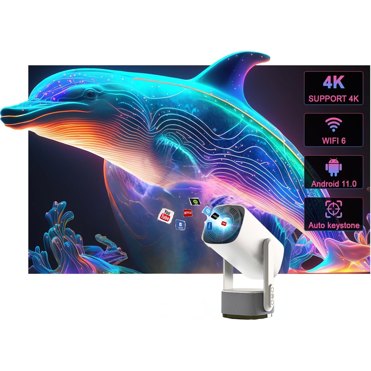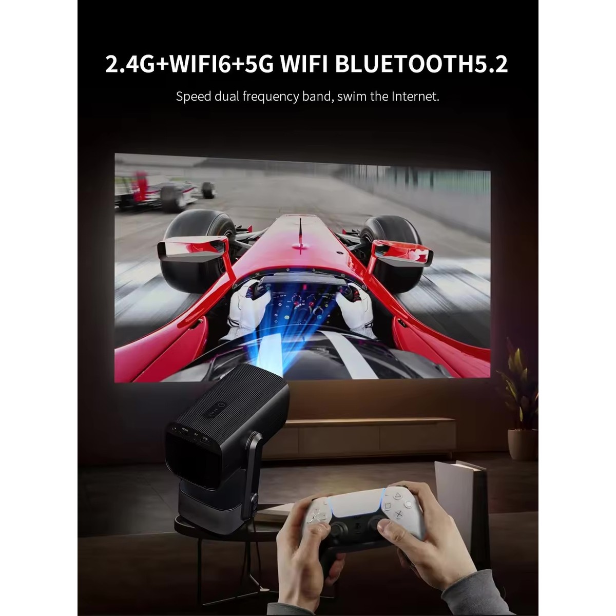 Ev projektörü, 1GB RAM ve 8GB ROM ile Android OS dahili olarak gelir. Eğlenceyi artırmak için istediğiniz uygulamaları indirebilirsiniz. Aynı zamanda projektör, 2.4G/5G WiFi 6 ve BT 5.2 desteği ile Bluetooth uzaktan kumandaya sahiptir, bu da size sorunsuz bir işbirliği ve kontrol hissi yaşatır.