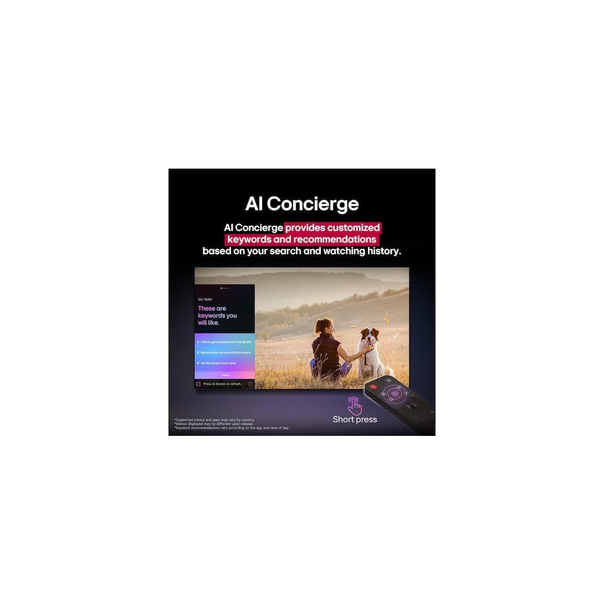 AI Magic Remote özellikli webOS, AI Arama, AI Sohbet Robotu ve AI Danışmanı özelliklerini desteklerken, webOS Re:New Programı 5 yıl boyunca her yıl güncellenir.