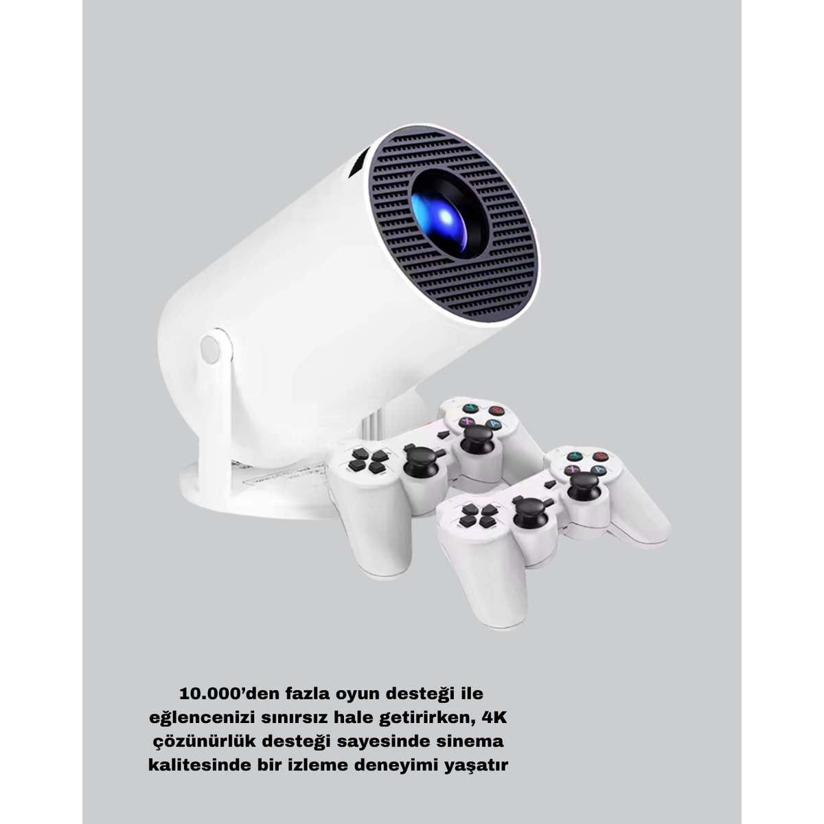 Bu gelişmiş projeksiyon cihazı, kablosuz bağlantı teknolojileri ve yüksek çözünürlük desteği ile hem ev eğlencesi hem de profesyonel kullanım için ideal bir çözüm sunar. Wi-Fi 6 desteği sayesinde internet üzerinden yüksek çözünürlüklü video akışlarını kesintisiz izleyebilir, düşük gecikmeyle ekran yansıtma yapabilir ve çok daha hızlı veri aktarımı sağlayabilirsiniz. Bluetooth 5.0 teknolojisi ise kablosuz ses sistemlerine hızlı ve stabil bağlantı imkânı sunarak güçlü bir ses deneyimi yaşatır.4K çözünürlük desteğine sahip olan cihaz, görüntüleri sinema kalitesinde ve netlikte yansıtır. Çift kollu ayarlanabilir tasarımı, farklı açılar ve konumlar için en iyi görüntü ayarını yapmanıza olanak tanır. Bu özellik hem ev sinema ortamı oluştururken hem de sunum yaparken maksimum esneklik sağlar. 10.000’den fazla oyun desteği sunması, oyun tutkunları için benzersiz bir eğlence alanı oluşturur.HDMI, USB ve AUX girişleri sayesinde cihazınızı bilgisayar, oyun konsolu, telefon, tablet veya ses sistemleri gibi birçok cihazla kolayca eşleştirebilirsiniz. Ekran yansıtma özelliği ile mobil cihazlarınızdaki içerikleri hiçbir kabloya ihtiyaç olmadan büyük ekrana aktarabilir, film izleme, sunum yapma, oyun oynama veya eğitim içeriklerini paylaşma gibi birçok işlemi pratik bir şekilde gerçekleştirebilirsiniz.Kompakt ve hafif tasarımı sayesinde projeksiyonu yanınızda kolayca taşıyabilir, evde, ofiste veya dış mekanlarda rahatlıkla kullanabilirsiniz. Ayrıca 4.000’den fazla uygulama desteği ile film platformları, müzik uygulamaları, eğitim yazılımları ve eğlence içeriklerine doğrudan erişim sağlar.Modern tasarımı, güçlü bağlantı özellikleri ve yüksek çözünürlüklü görüntü performansı ile bu projeksiyon cihazı, multimedya deneyimini üst seviyeye taşımak isteyen herkes için mükemmel bir teknolojik çözümdür.