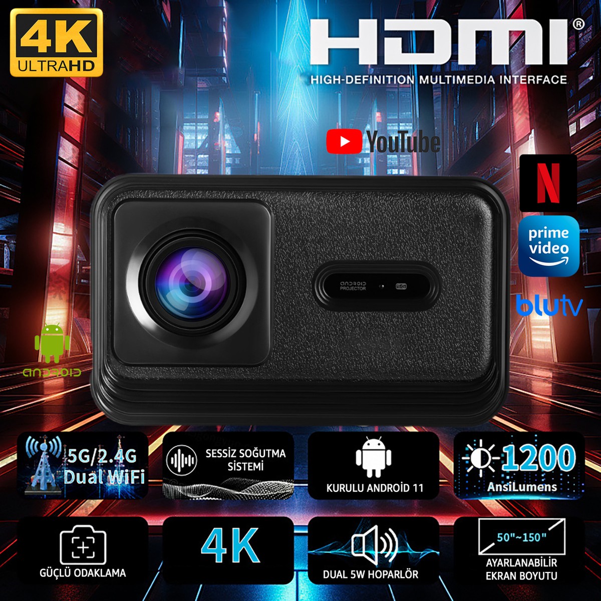 Projeksiyon kalitesi gerçekten harika, 4K görüntüler çok net ve canlı. Android sistemi sayesinde her türlü uygulamaya kolayca erişim sağlayabiliyorum. Bluetooth bağlantısı da çok pratik, ses sistemimle hemen eşleşti. Kesinlikle tavsiye ederim, ev sineması deneyimi için mükemmel bir seçim.