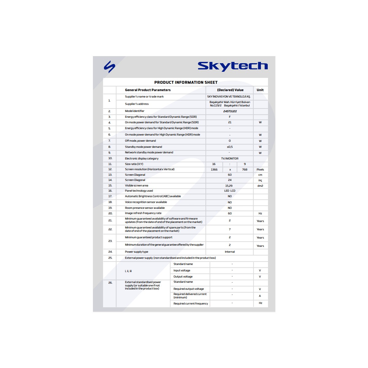 Skytech 24ST3101 24” 60 Ekran HD Ready Android LED TV (12 WOLT) ÇERÇEVESİZ