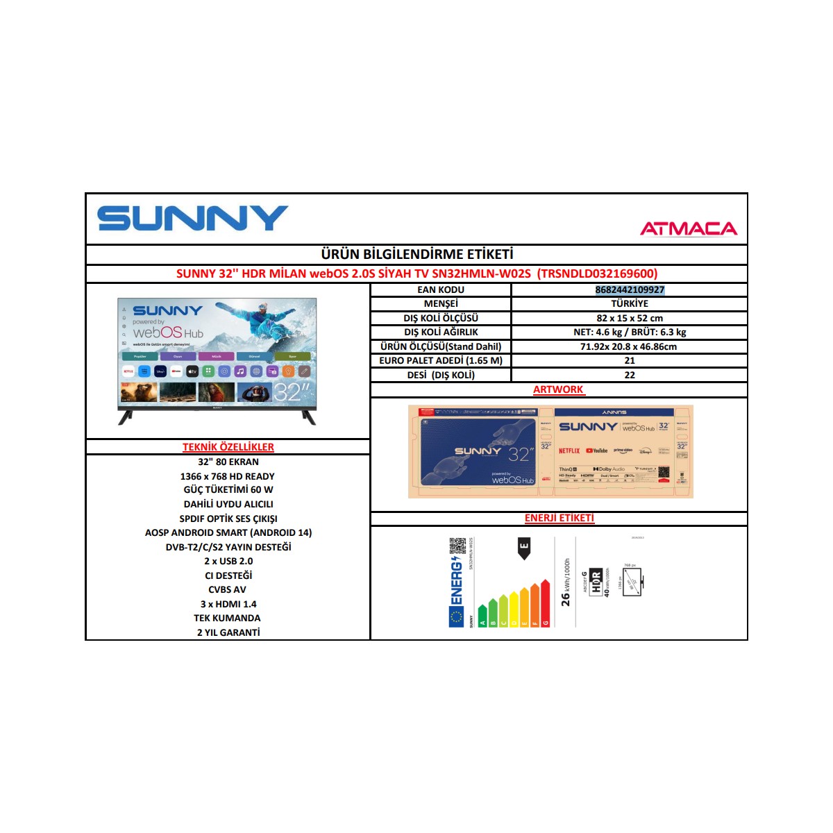 Sunny SN32HMLN-W02S 32” 80 Ekran Uydu Alıcılı Hd Ready Webos LED Tv