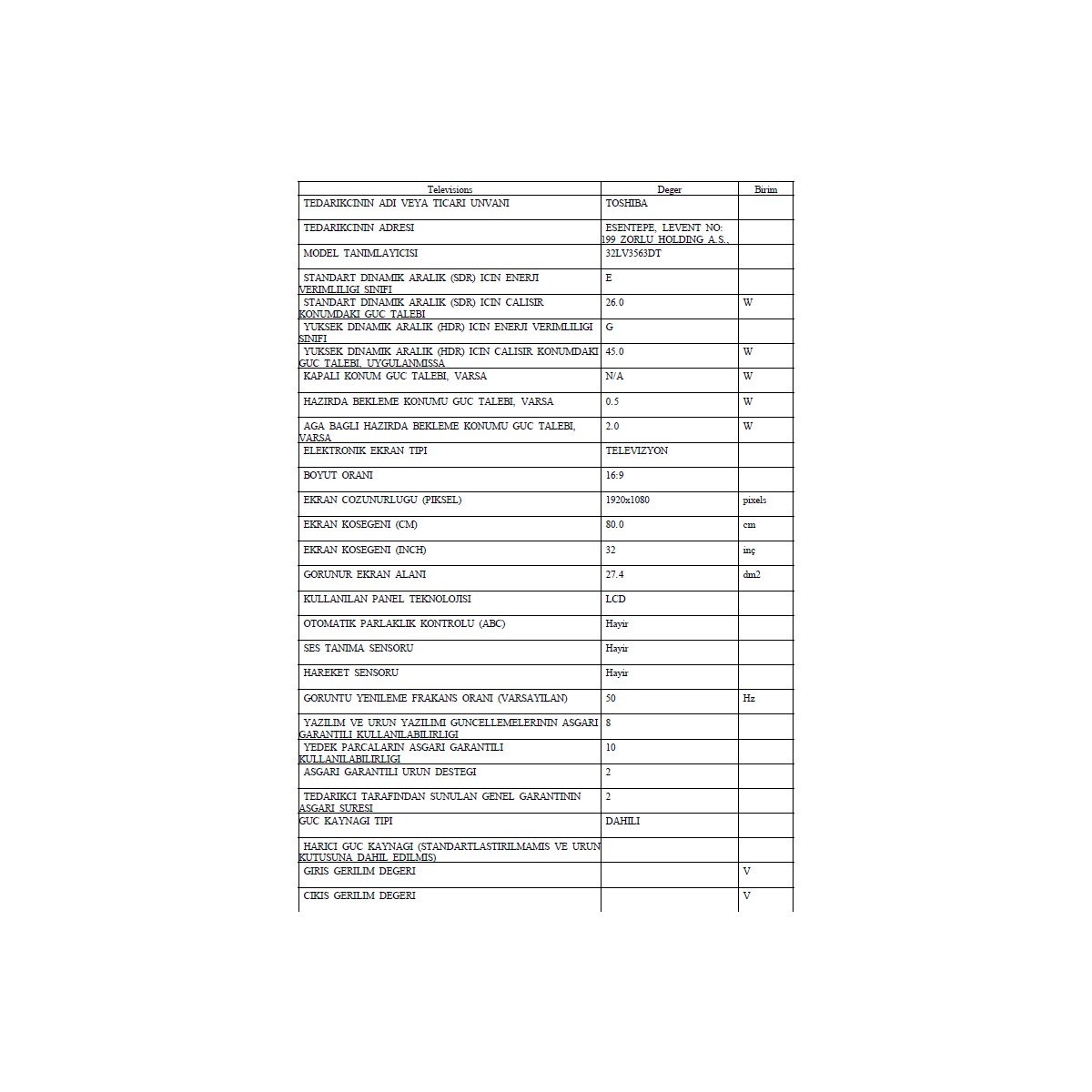 Toshiba 32LV3563DT 32” 80 Ekran Uydu Alıcılı Full HD Vidaa TV için 15 değerlendirme