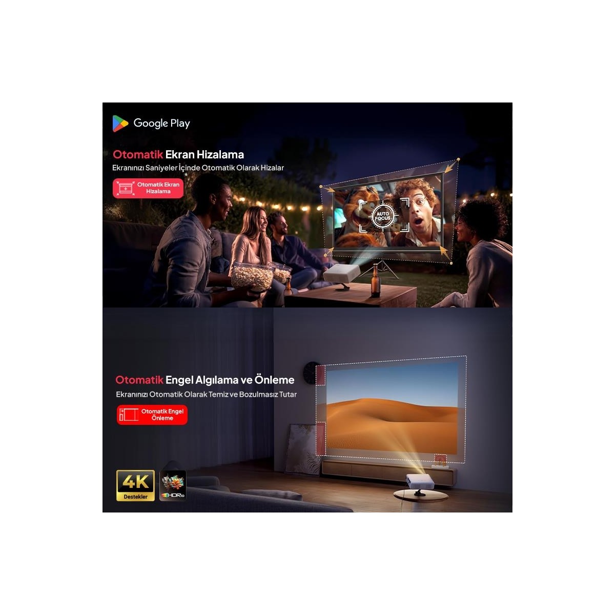 Vankyo Aurzen D1G Android Google Tv 4K Destekli Projeksiyon Cihazı +HDR10+AUTO Focus+Auto Keystone+6g Wifi+6.1bt+Dolby Ses Sistemi – Ps5/ps4/xbox